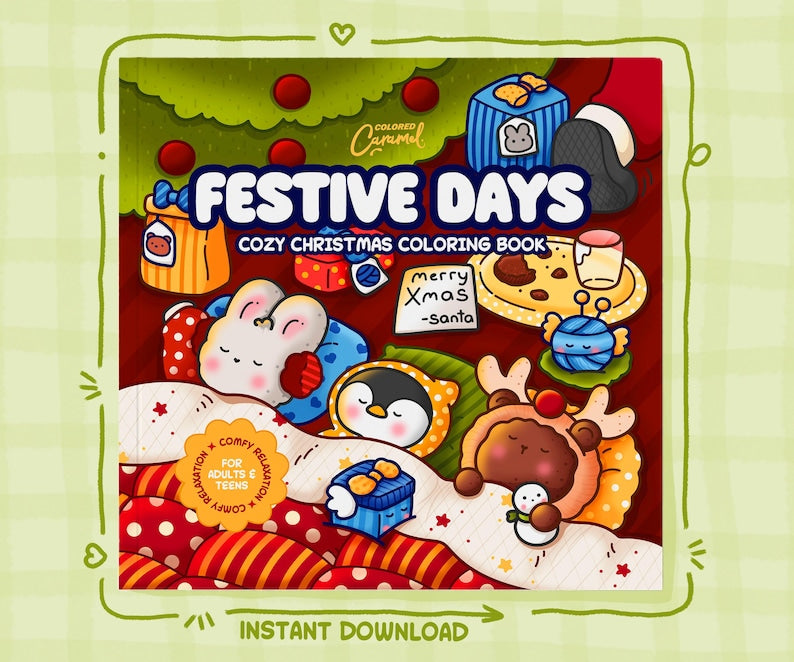 Merry Christmas Coloring Pages, 40 Cute, Cozy & Comfy Winter Illustrations with Little Friends (Printable Instant Digital Download PDF)